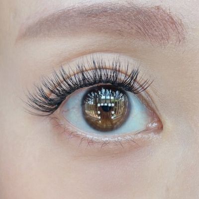 こちらのダブルラッシュはクラシックラッシュのような濃さもありながら、根元が二束のおかげで、より横幅広く自まつ毛に接着出来るので、バラつきも少なくアイライン効果もあり、1週間経っても綺麗です!黒目の始まりから終わりにかけて、こちらを5束ほど使用し、目尻と目頭にはクラシックラッシュタイプのエクステを使用してます。