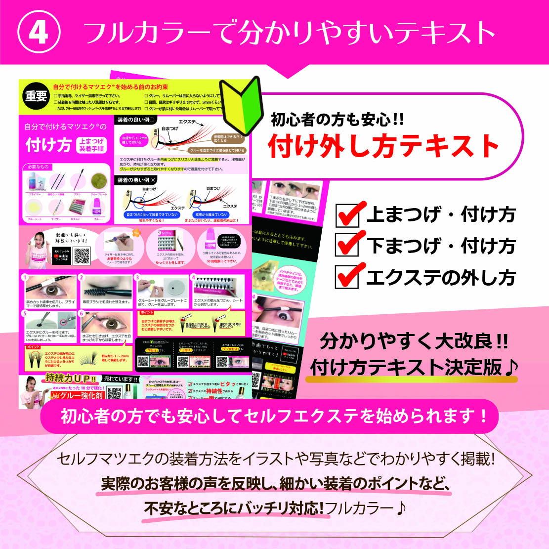 お店でマツエクをしてもらっていましたが、コストがかかる事から、思い切ってこちらで購入させていただきました。動画で分かりやすく説明してくれているので、実践にも困らず、とても満足しています。慣れたらもっとキレイに仕上げる事が出来るかと思います。