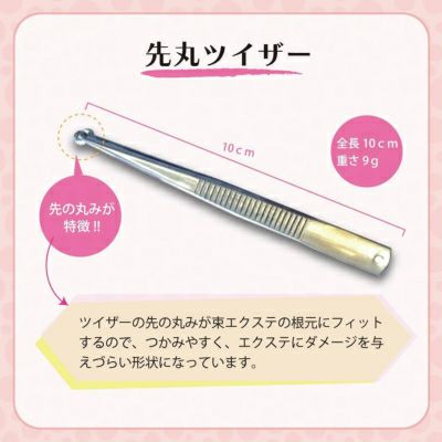 先が丸く、フレアの根元の部分にフィットするので、エクステが掴みやすくさらにエクステにダメージを与えづらい形状となります。
