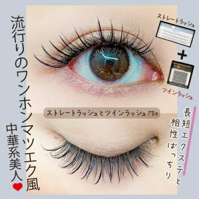 着けるのが難しそうですが、やってみると意外と簡単!ピタっと着いてくれます。少ない量でボリュームがでて時短。センターラッシュばかりだったけど、ワンホンにしたりデザインの幅もあるので今ではストレートラッシュが一軍です。