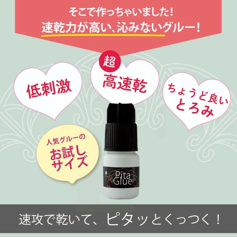ピタグルーを初めて使用しました。今まではトップグルーでセンターラッシュをつけていたのですが・ピタグルーの方が接着速度が早くサクサクと作業が出来とても良かったです。後は持ちが良ければ良いなですが!